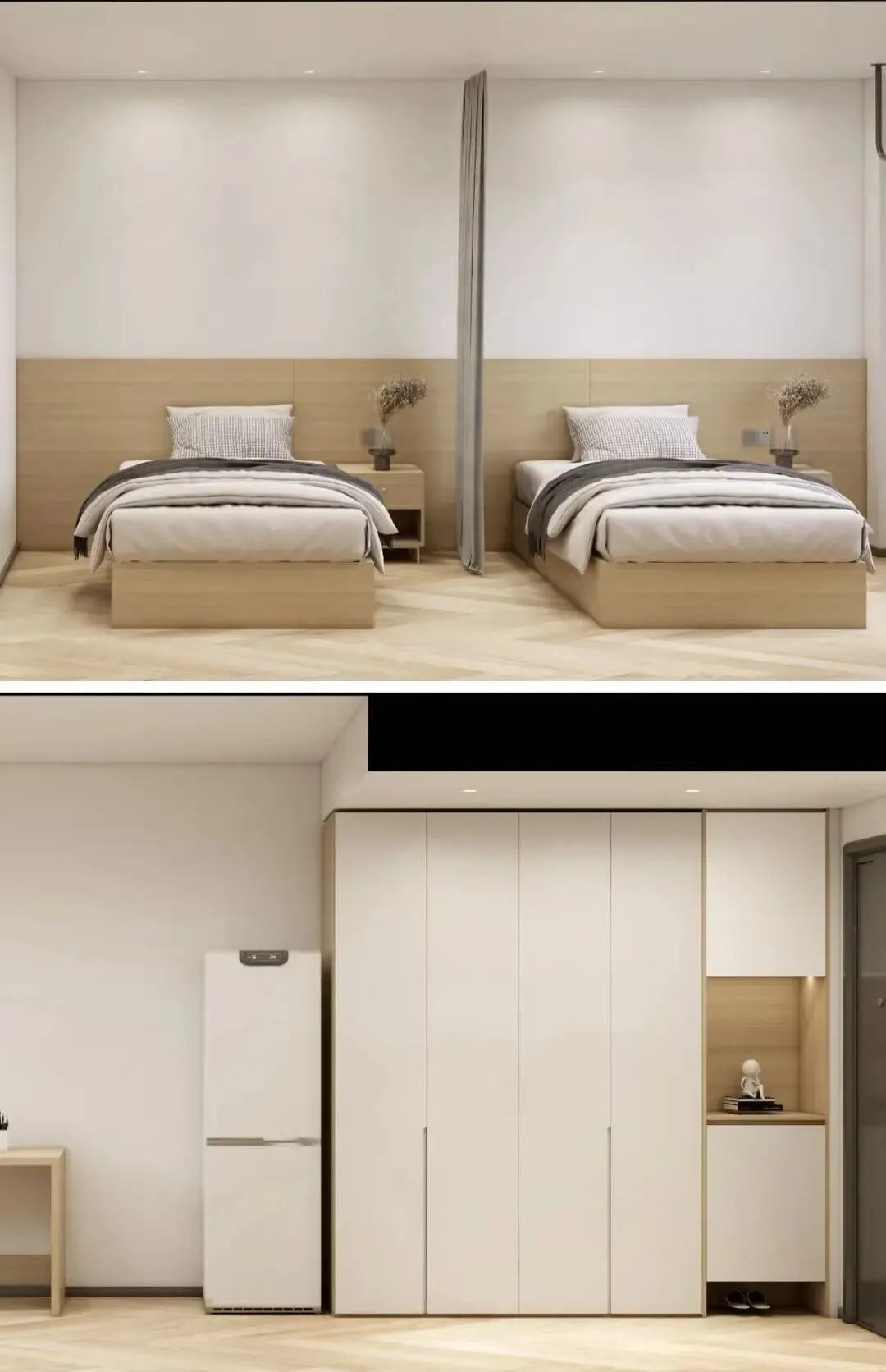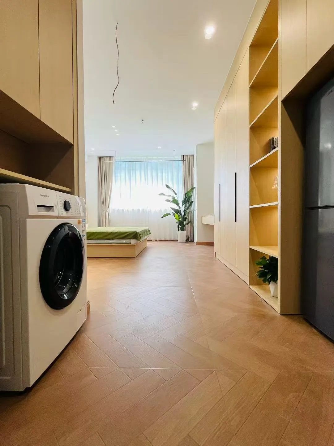 建筑面积45平,单间施工总造价为34650元,含人工+软硬装+定制家具+品牌家电,每平方造价仅770元。