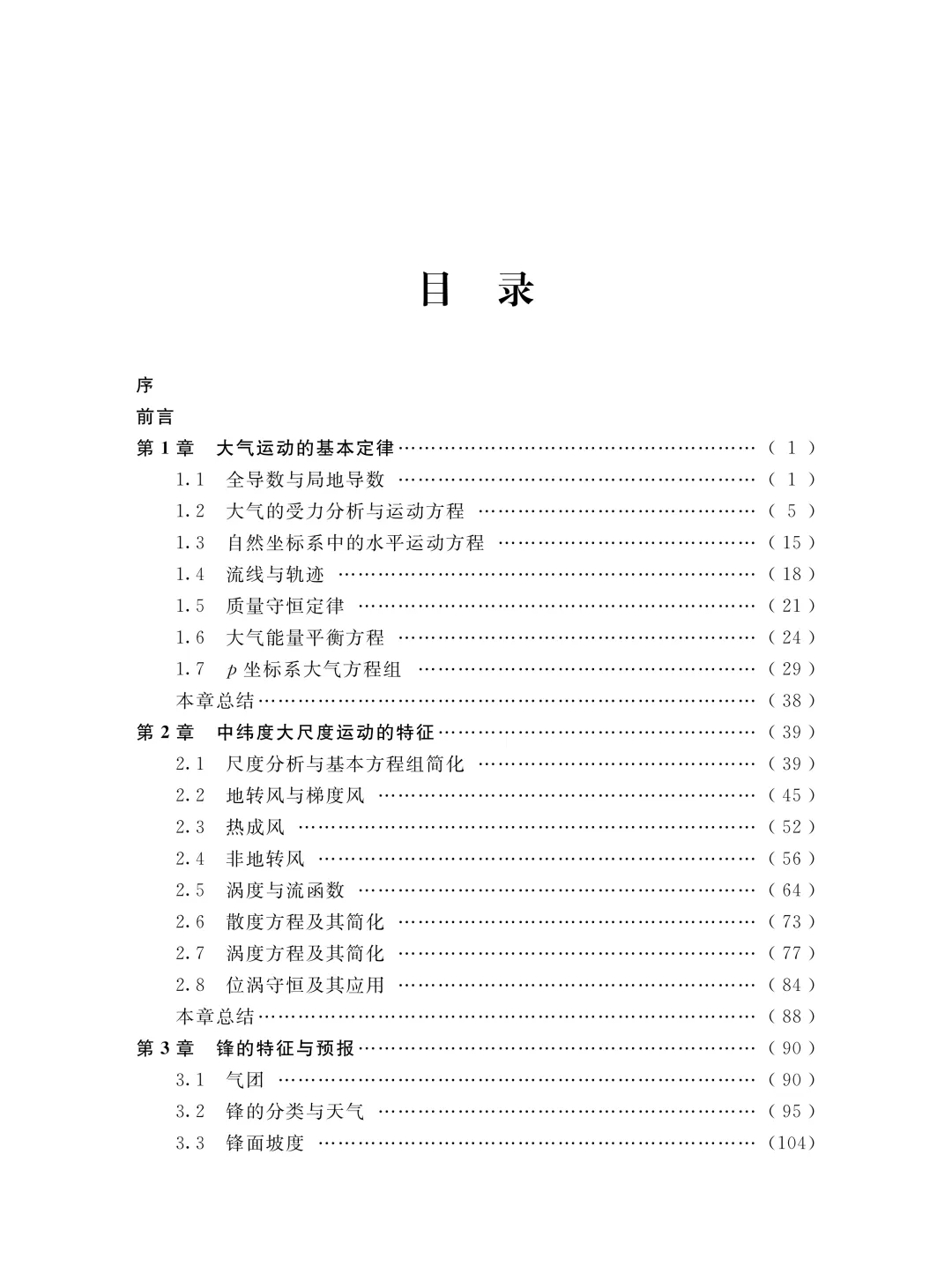 本书结合经典的天气学理论与近年来天气学研究新成果和新案例,系统阐述天气系统发生发展的动力学和热力学过程等基本原理。主要内容包括大气运动的基本定律、中纬度大尺度运动的特征、锋的特征与预报、气旋与反气旋发展理论及应用、天气系统演变的大气环流背景。