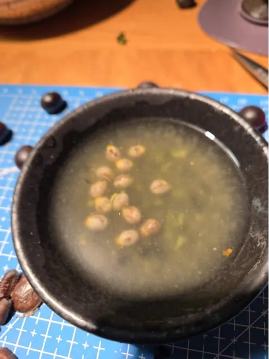 撕开去,还有层薄薄的紫红色果皮,放在水里泡会儿。