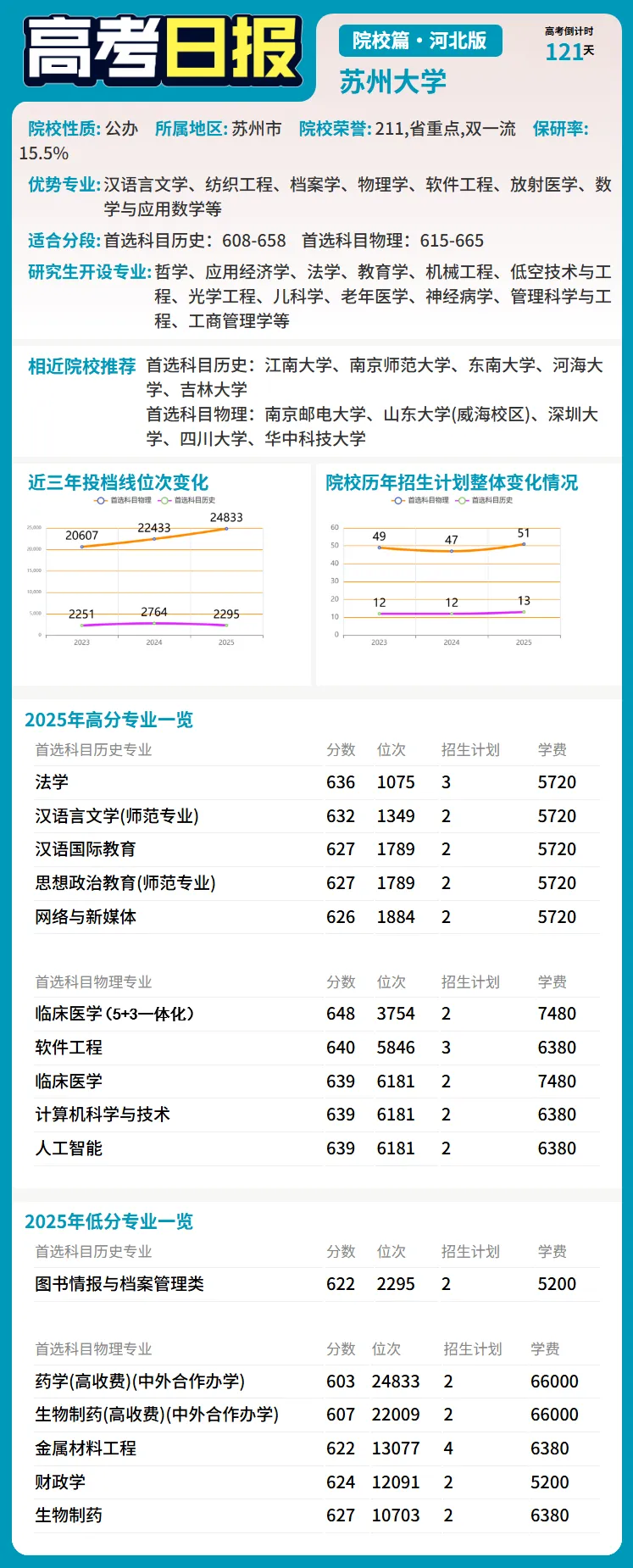苏州大学坐落于素有“人间天堂”之称的历史文化名城苏州,国家“211工程”“2011计划”首批入列高校,“双一流”建设高校,江苏省属重点综合性大学。临床医学、物理学等19个学科进入全球基本科学指标(ESI)前1%,化学、临床医学等5个学科进入全球基本科学指标(ESI)前1‰