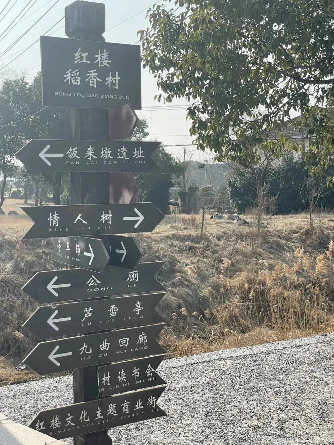 时近中午,新的寻梦之旅悄然开始。百度导航:普光寺 南京市江宁区,7公里。当车行至陆郎乡间,一块白底黑字的路标赫然入目“红楼稻香村”。曹雪芹笔下的“稻香村”,是李纨清守的田园,而眼前这方土地,竟与之同名。这巧合般的指引,瞬间将人从明丽童话,拉入了幽深绵长的文学梦境。