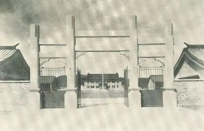 校门是牌楼式的,朝东正面是当时书法家、行政院长谭延闿书写的“国民革命军遗族学校”九个大字,校门的背面是蒋-介-石亲笔题的“亲爱精诚”四个大字。门前自南至北是一条大石子马路,南到卫岗接宁杭公路,北到四方城接中山路,汽车可通学校,穿过校门经过花坛直到礼堂。礼堂可容一千多人,柱子上悬挂着戴季陶撰书的木制对联,字句我已记不清楚,大意上联是怀念先烈的英雄业绩,下联是鼓励 遗 族 学 生好好学习。礼堂外的水泥人行道,汽车可通全校各处。