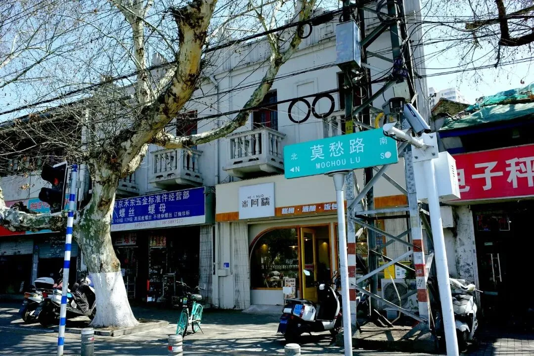 莫愁路的最南端是个三岔路口,莫愁路,升州路,水西门大街三条主干道交汇于此。这个路口是交通要道,除了三条主干道,还通着很多小路,像木屐巷、犁头尖、朱状元巷、韩家苑都在这个三岔路口附近。