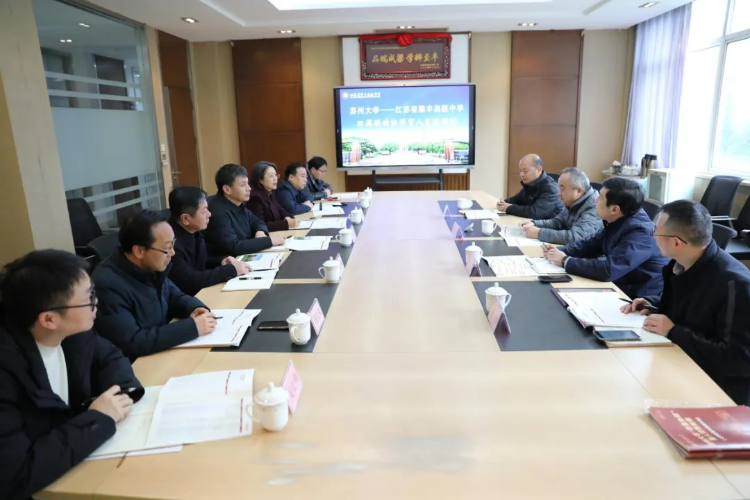 为进一步深化校地协同育人机制,筑牢人才培养共同体,2月4日,苏州大学党委常委、副校长查佐明一行到访江苏省梁丰高级中学,双方围绕“双高联动、协同育人”主题展开深入交流。市委教育工委委员、副局长朱治国,梁丰高中党委副书记谈雅琴,校长高冰峰,市教育局基础教育科副科长周鹏、梁丰高中副校长周汉东、培优中心主任张春华、课程中心副主任吴红伟等共同与会。座谈会由高冰峰校长主持。