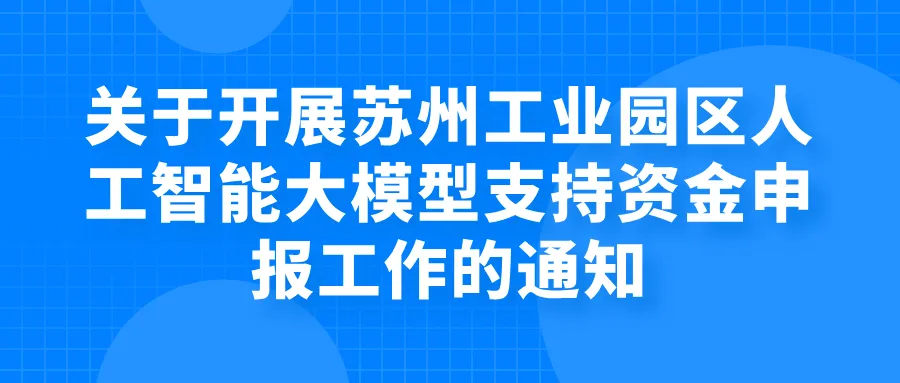 根据《苏州工业园区关于加快提升产业科技创新能力的若干政策》(苏园管〔2025〕4号)、《苏州工业园区关于加快推动人工智能及数字产业高质量发展的实施细则》(苏园科〔2025〕20号),现组织开展苏州工业园区人工智能大模型支持资金申报工作。具体说明如下: