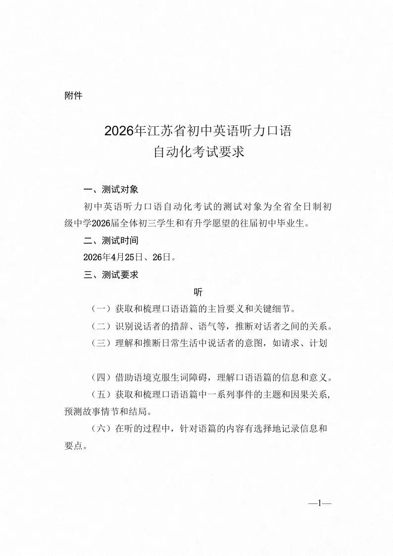 考试明确了!2026苏州听力口语中考时间已定!附官方口语范文及考试范围!