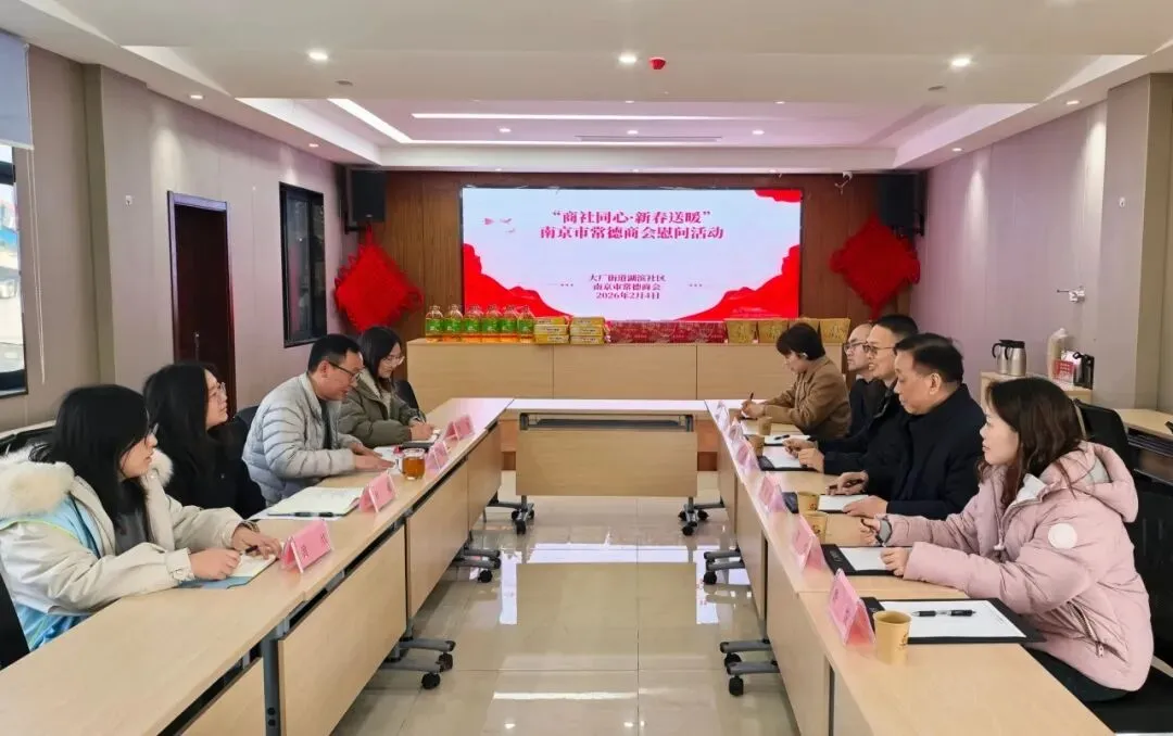 2026年2月4日下午,南京市常德商会走进湖滨社区开展新春慰问活动,为社区困难群众送去温暖与关怀。南京市工商联总商会党委专职副书记李友伟、一级主任科员耿浩松、湖滨社区党委书记万开强、南京市常德商会会长兼党支部书记覃建建、副会长兼专职副秘书长张兰、理事覃煜等共同参与活动。
