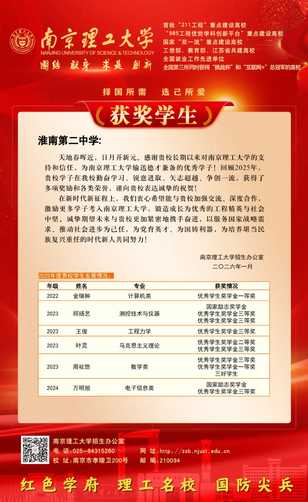 >南京理工大学发来喜报 | 今天二中以你为荣