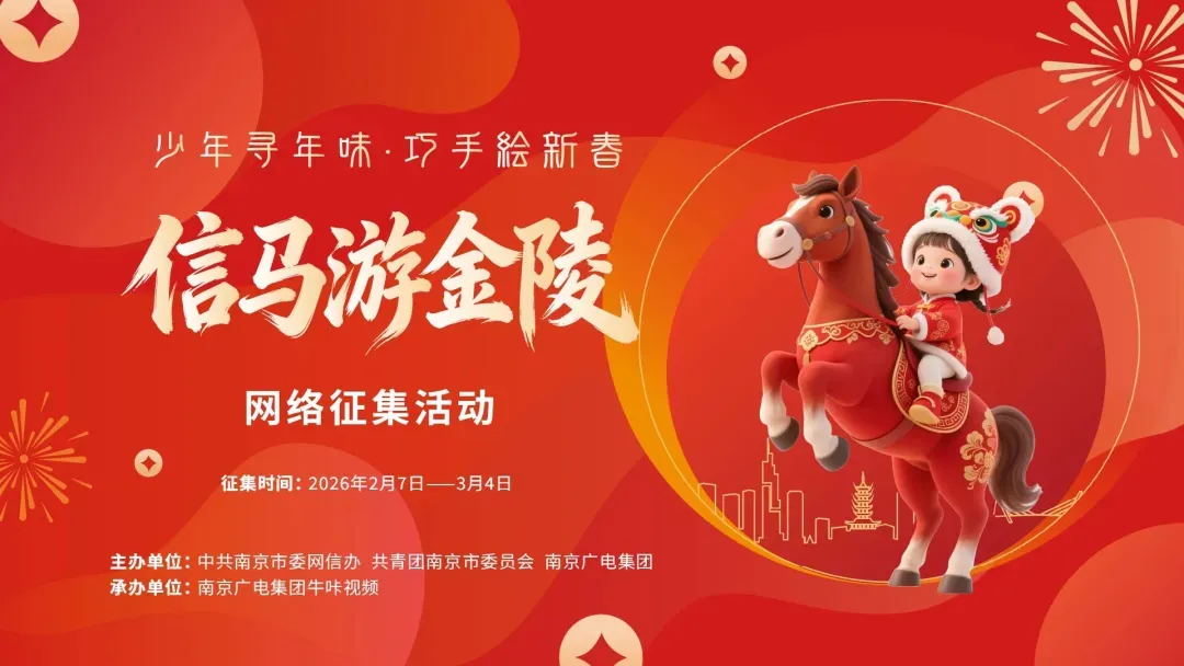 邀请全市中小学生围绕“马年新春”主题,创作马年手工作品(包括但不限于剪纸、书法、泥塑、绘画、手工编织等);携带完成的马年手工作品,前往南京地标性景点(如夫子庙-秦淮风光带、老门东历史文化街区、总统府、南京博物院、玄武湖公园等)或春节氛围浓厚的点位(如年货市场、春节灯会现场、特色民俗街区等),以拍照或视频形式完成打卡,记录手工作品与南京新春景致的融合瞬间,可同步介绍打卡点位的历史文化、春节特色活动。