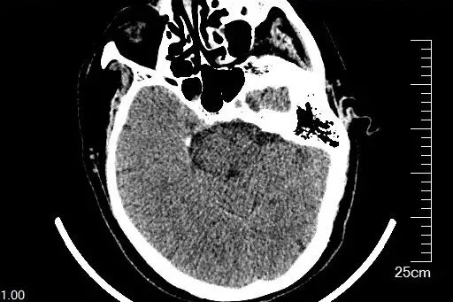 辅助检查中,心电图未见明显异常,头颅 CT 提示右侧侧脑室后角旁缺血灶可能(与本次疾病无关,余未见其它病灶排除继发性周围性面瘫),结合临床表现及体征,患者主要症状符合左侧周围性面神经受损特征