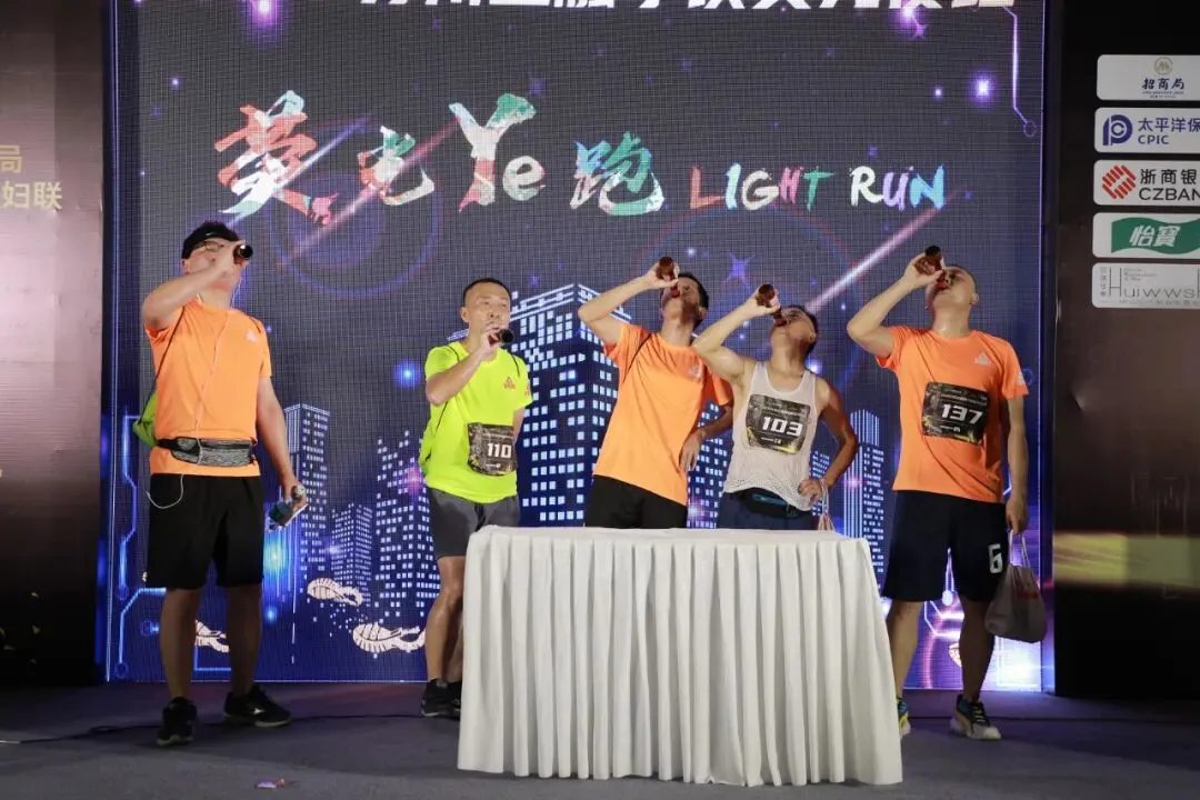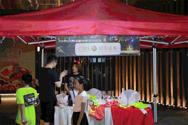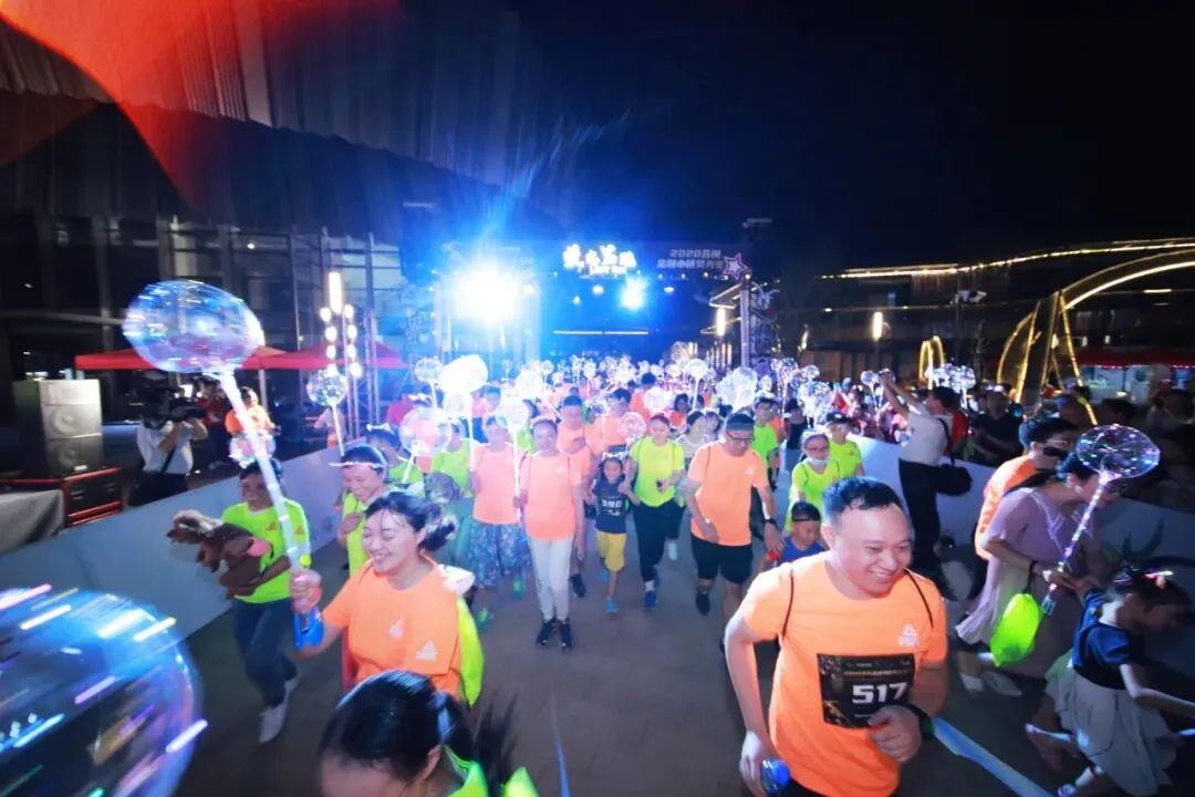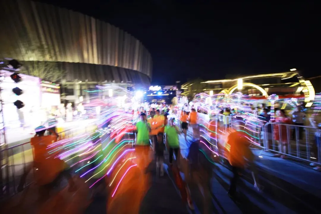 现场,一辆荧光闪耀的大篷车作为开道车,开在跑步人群的最前方,动感十足的音乐伴随着跑者,一道道荧光挥舞在空中,象征着苏州金融小镇发展的无限魅力与十足动力。