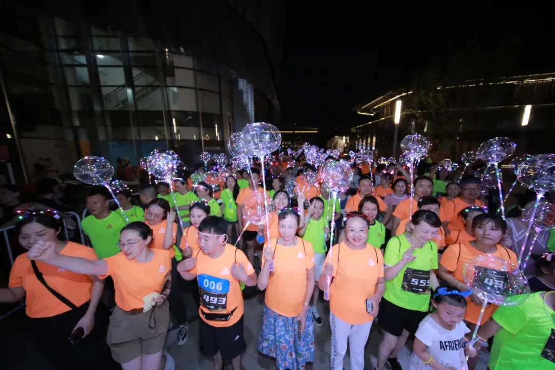 入夜后的苏州金融小镇,分外炫目迷人。活动分为3公里乐跑组和2公里乐行组,大人、小孩们装扮上各式各样的炫酷荧光装备后,显得格外有趣。