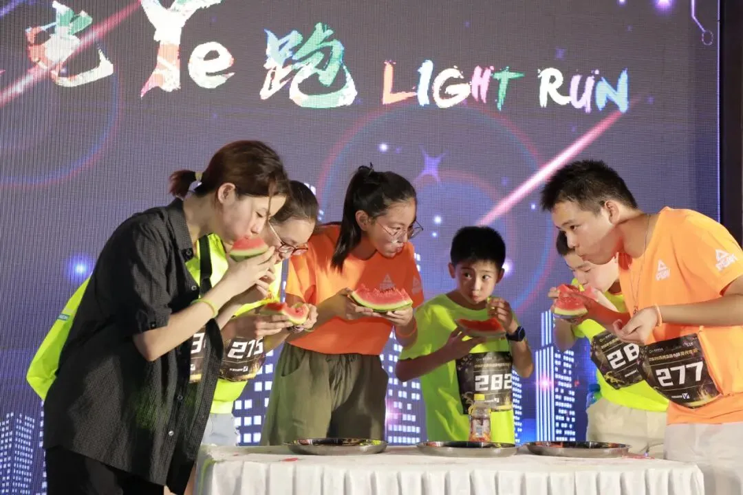 在苏州众多形式的夜市里,金融夜集市还尚属首次,通过将运动健身、智慧答题、金融企业品牌展示、趣味互动游戏等环节相串联,尽展苏城夜晚的独特魅力。同时,在主持人的带领下,现场还进行了好玩又刺激的喝啤酒大赛、吃西瓜大赛等互动游戏,众多跑者跃跃欲试,纵情欢笑,为夜色中的小镇增添了十足的欢乐。