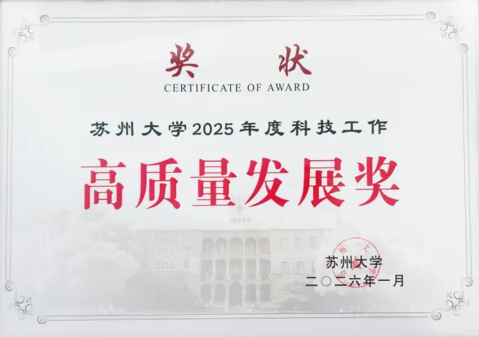 获批国家自然科学基金项目共205项,占比全校50.5%,获批经费10416余万元,占比全校48%。获批重点研发计划项目2项、课题1项,获批经费679余万元。获批省部级科研项目37项,获批经费2987万元。民口纵向项目总经费到账19117余万元,民口横向项目总经费到账10882余万元,国防科研项目经费436余万元。与苏州市政府、苏州工业园区共建苏州创新药研究院,获批江苏省血液病重点实验室,完成江苏省重大脑疾病创新药物研发及转化重点实验室的优化重组,获批建设江苏省生物医学基础研究中心以及核酸药物与细胞治疗技术教育部工程研究中心,深度融入苏州市健康医疗数智创新实验室建设,稳步推进国家血液系统疾病临床医学研究中心建设。荣获苏州大学2025年度科技工作先进单位高质量发展奖及校长特别奖。