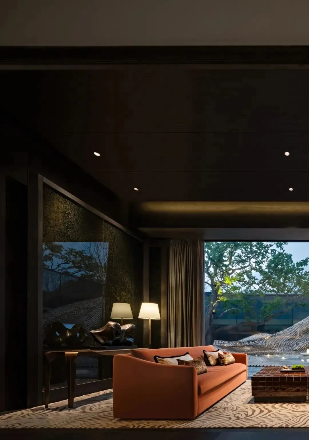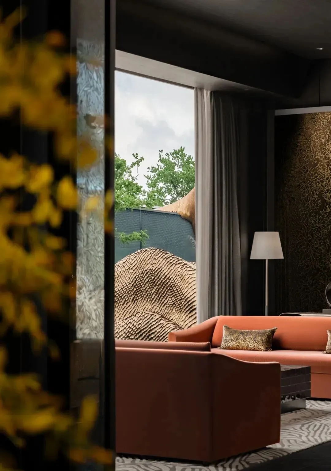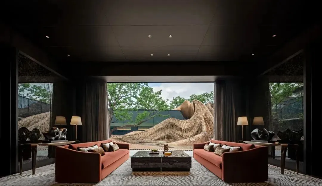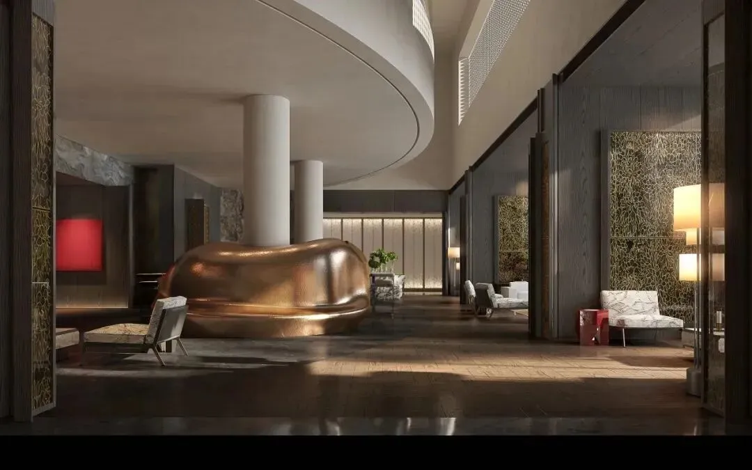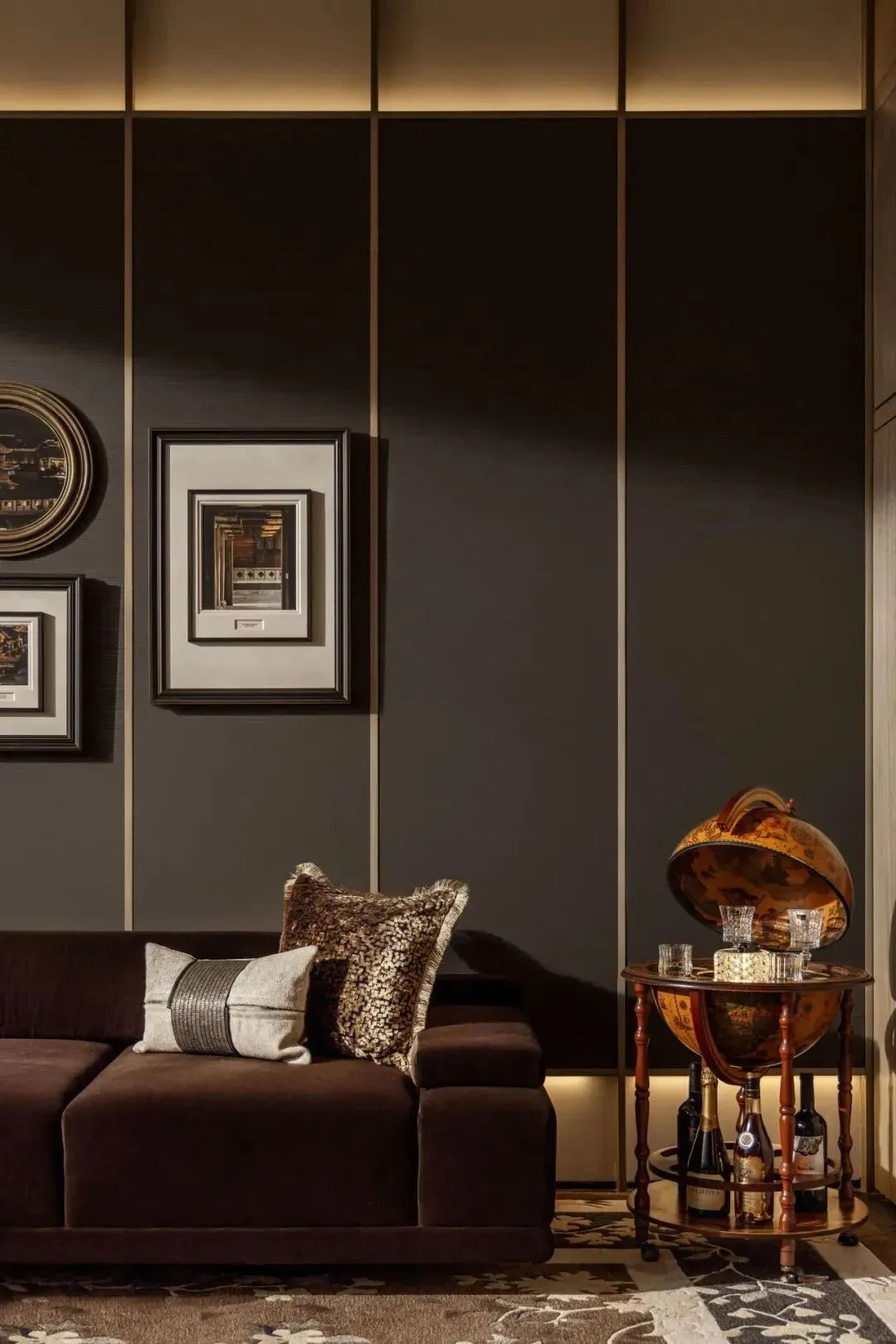 整体深色调的木饰面背景,以还原根植于南京文化的厚重底蕴为切入点,配合多处天然石材与古铜钢金属的搭配,打造品质与隐奢调性的空间感受。