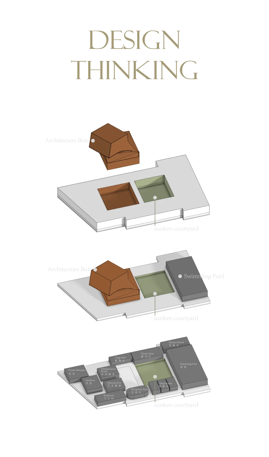 整体空间涵盖3000平方米的空间尺度,主要打造为一个三层单体并涵盖一个地下超大会所的多功能建筑体。基于项目的超级体量,空间的众多功能单元如何恰当地介入空间、各功能之间又如何流畅地转圜,成为了本案首先需要解决的问题之一。