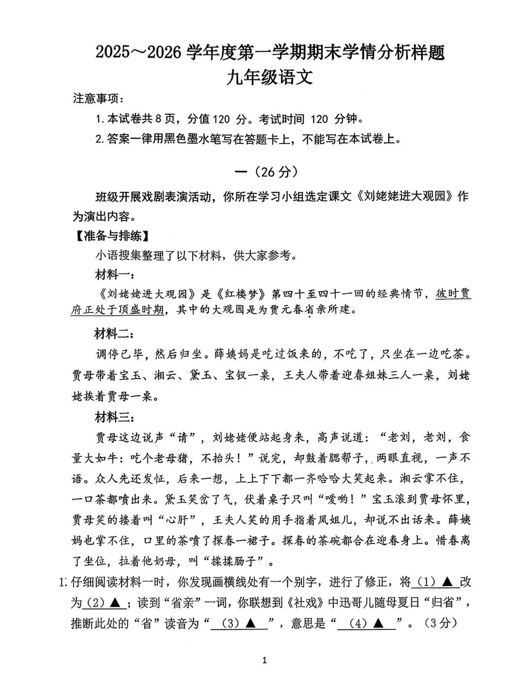 >2025-2026南京联合体九年级上期末物理试卷(电子版可打印)