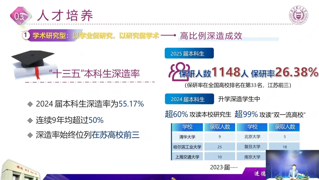 南京理工大学就业前景广阔,2024年75.57%毕业生服务于国防和工信领域核心单位,30.12%入职世界500强企业,本科生深造率连续多年超50%。