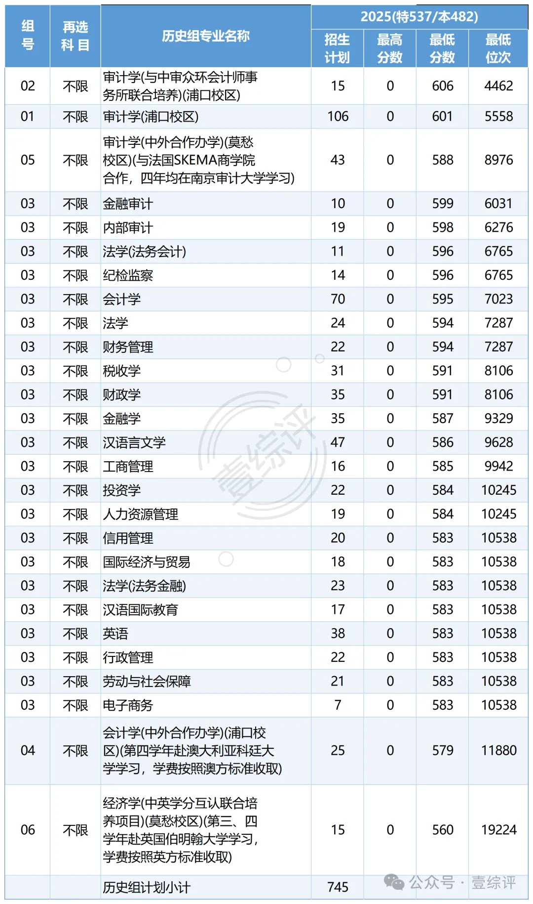 历史类最高:606分——审计学(与中审众环会计师事务所联合培养)(浦口校区)