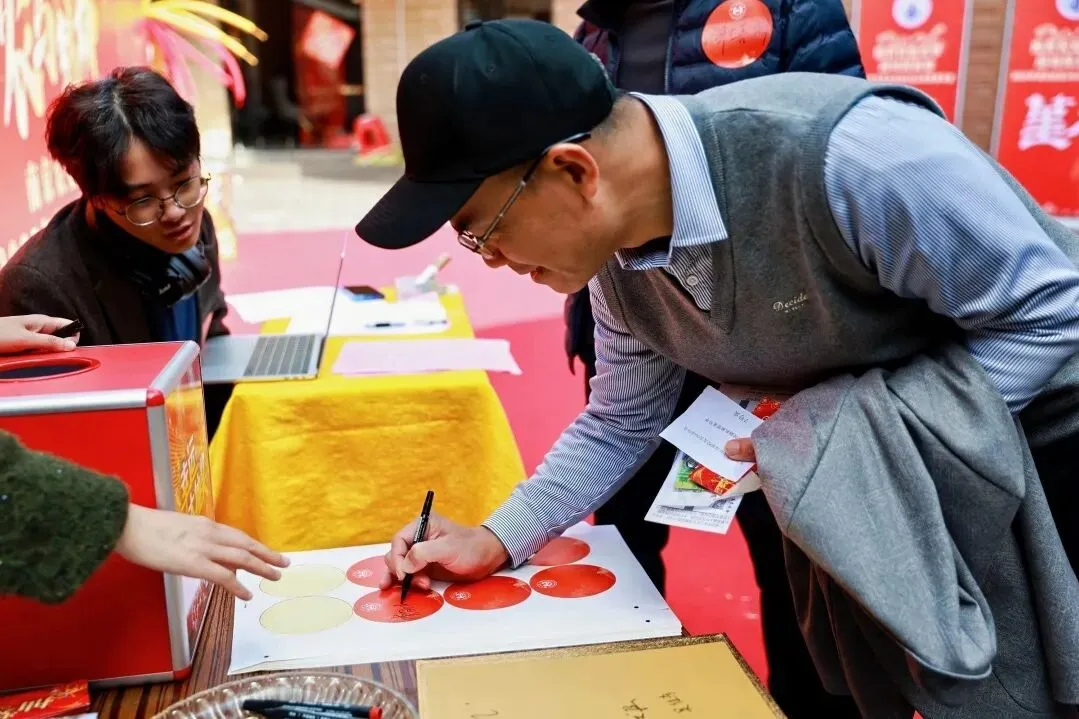 下午1时起,签到环节正式开启。校友们陆续进场,抽取晚宴桌牌、投放抽奖券,在主展板前定格笑脸,趣味十足的签到流程迅速点燃现场氛围。先到的校友自发化身“志愿者”,协助引导、装扮现场,用行动诠释着“南农是家”的归属感。