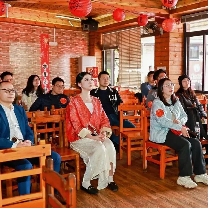 下午4:30,拍照打卡环节温情启幕,近百位校友齐聚农庄中庭大合影,共同定格团圆瞬间。为让打卡更具仪式感与专属感,现场特意精心布设了主题背景板、南农“诚朴勤仁”校训展板,搭配多款特色手持牌——既有镌刻“南农印记”、承载同窗回忆的专属设计,也有印着马年吉祥语、洋溢新春气息的年味款式,校友们或单人定格、或三五结伴,手持特色手牌,依偎在校训展板旁,在背景板前展露笑颜,每一张照片都饱含着对母校的眷恋、对同窗的情谊与对新年的期许。随后,全体校友并肩合影,“钟山脚下,同窗共读,鹏城大地,筑梦前行”的口号齐声高喊,声音里满是南农人的自豪与对未来的期许,将现场氛围推向小高潮。