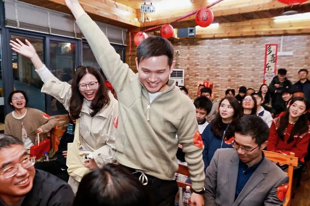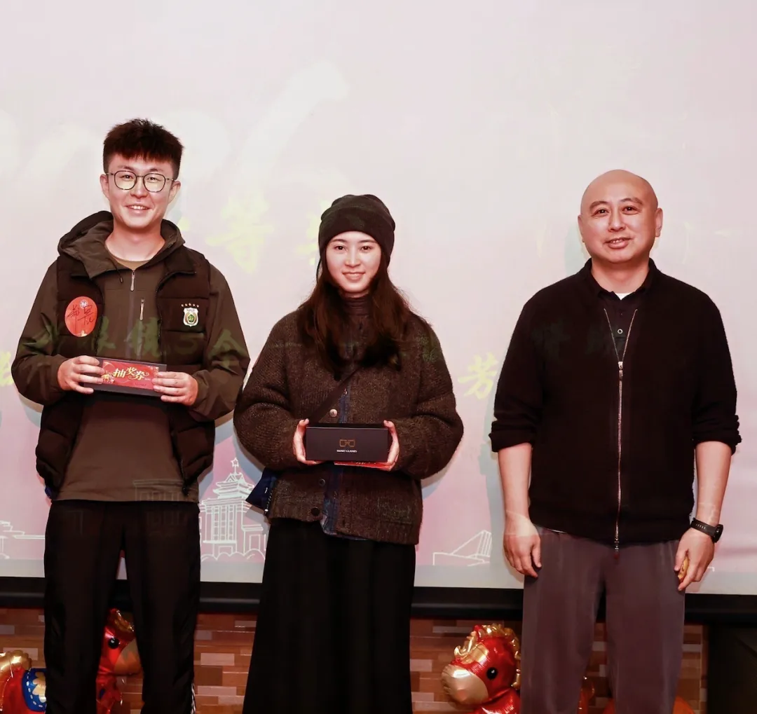 最令人热血沸腾的抽奖环节紧随其后,现场氛围被推向顶峰。三等奖(南农logo茶叶)8名、二等奖(南农主楼积木)5名、一等奖(智能AI眼镜)3名、特等奖(1088元现金红包)1名,每一次抽奖嘉宾手持奖券的瞬间,全场都屏息期待,念出名字时的欢呼与掌声此起彼伏。中奖校友的欣喜溢于言表,未中奖的校友也面带微笑,在温馨的氛围中坦然释怀。