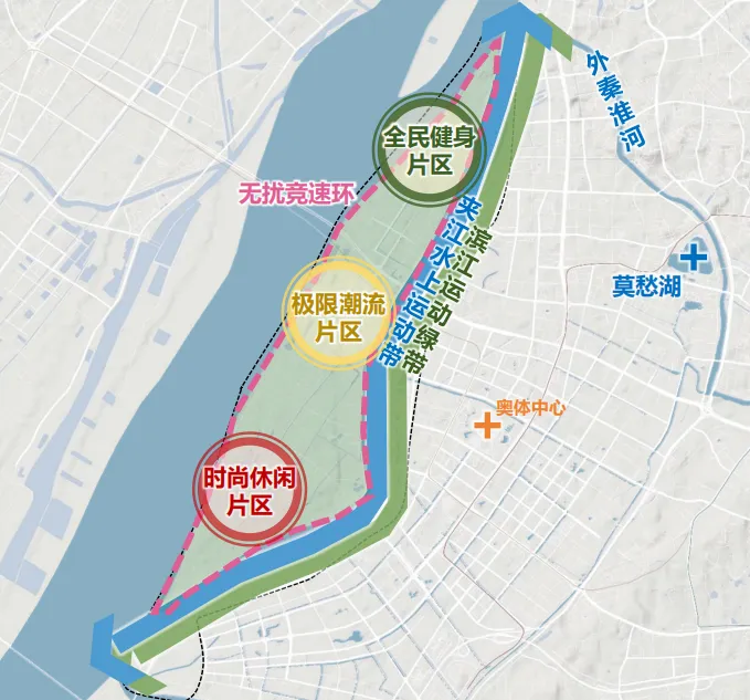 据了解,根据江心洲全岛“一环、两带、三片区”的空间布局,依托项目布局,未来,江心洲将在岛北、岛中、岛南分别打造全民健身片区、极限潮流片区、时尚休闲片区。江心洲南岛体育公园项目,计划设置足球、网球和儿童设施。
