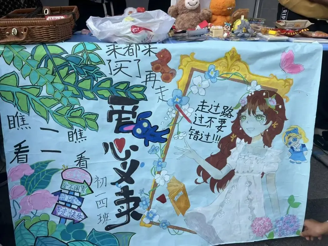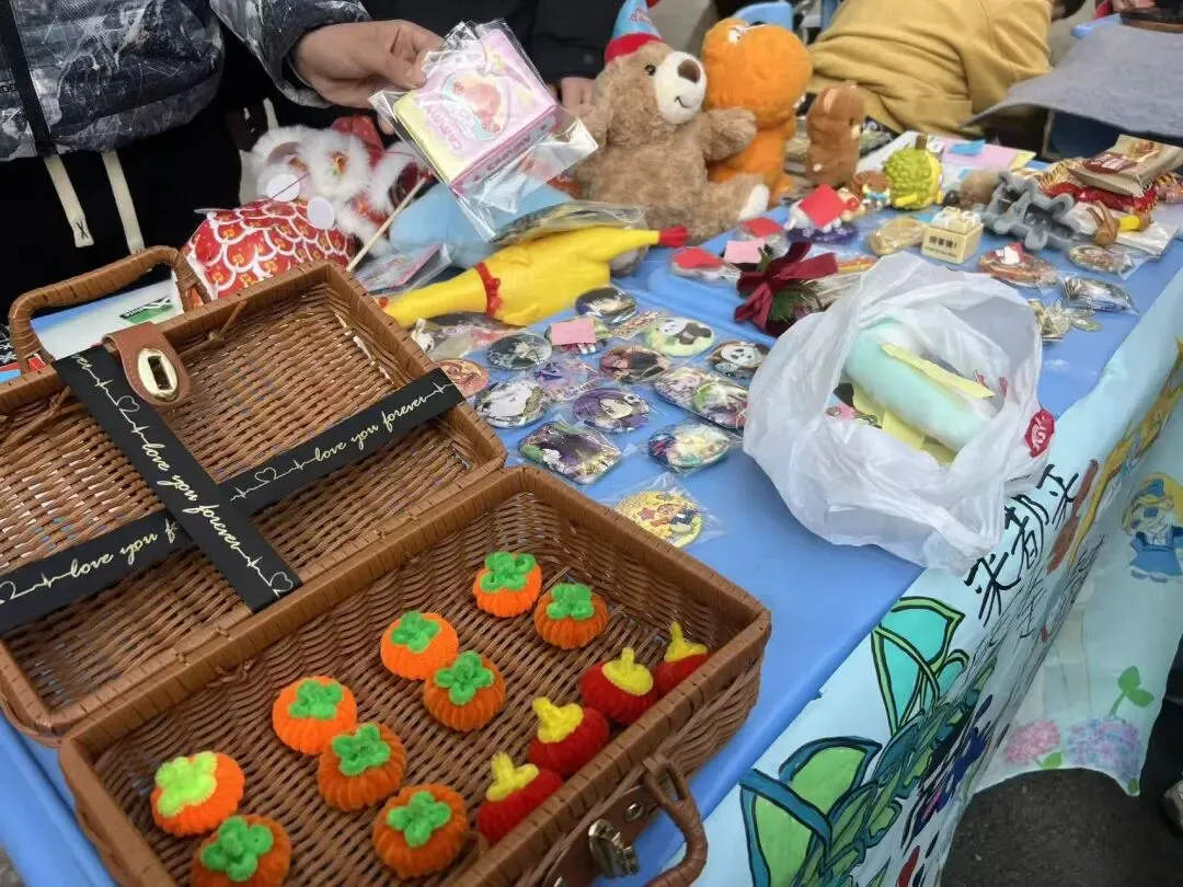 闲置好物焕新颜,学子化身“小摊主”,热情推介、真诚互动;老师们暖心助力,师生同心,让校园变成充满善意的爱心集市。