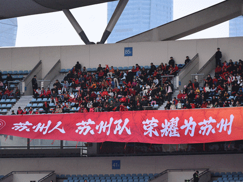 第二回合去到南京,苏州足协组织了近500名苏州球迷前去客场为苏州队助威,苏州队的胜利也让大家都觉得不虚此行。