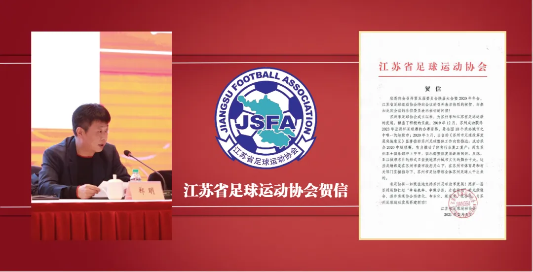 本次大会是一次团结、和谐、胜利的大会,它为苏州足球事业的发展写下了浓墨重彩的一笔,也标志着苏州市足球协会正在为苏州建设国际体育文化名城做出积极努力,大会号召全市足球社会组织、足球工作者以及足球爱好者,在《苏州市足球改革发展实施意见》的指引下,紧密团结联系社会各界人士,开创苏州市足球事业发展新局面,为苏州体育高质量发展、开放再出发作出应有的贡献。➣ 足球改革内容纳入《苏州市体育发展“十三五“规划》;➣ 出台《苏州市足球改革发展实施意见》等一系列推动苏州足球改革的发展政策;➣ 苏州先后成为中国足球协会青少年女足训练基地、男足训练基地;➣ 形成了市级体校、校园足球、青少年俱乐部等模式相结合的多元格局;➣ 创建了全国青少年校园足球特色学校250所,数量位居全省第一;➣ 加强了对职业足球发展的扶持力度,拥有了苏州东吴和昆山FC2支中甲球队;➣ 承接了亚足联U23锦标赛、国足热身赛、中国足协超级杯赛等高水平足球赛事,成为2023年亚足联中国亚洲杯赛办赛城市;➣ 去年,苏州超常规承办2020赛季中超联赛,被国家体育总局授予“抗疫情保备战突出贡献纪念奖”杯。中国足协专门致函感谢,江苏省体育局、苏州市委市政府领导纷纷作出批示,祝贺中超联赛在苏州成功举办。