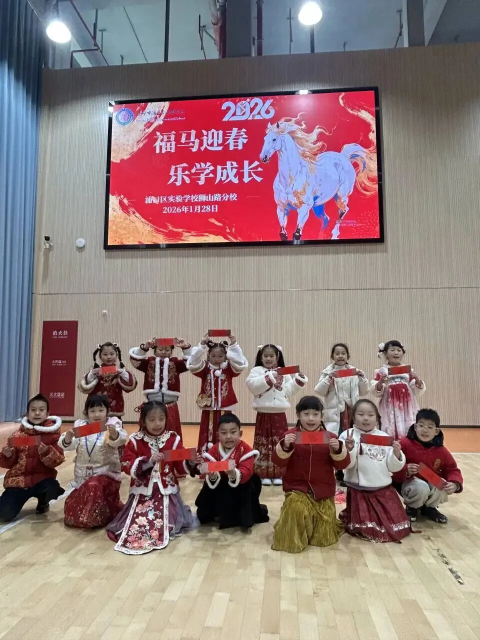 闯关成功后,孩子们还能自选新年福马印章,亲手完成拓印,将满满的福气带回家。二年级学子则在下午 1:20 接力闯关,同样展现出扎实的学识和蓬勃的朝气。