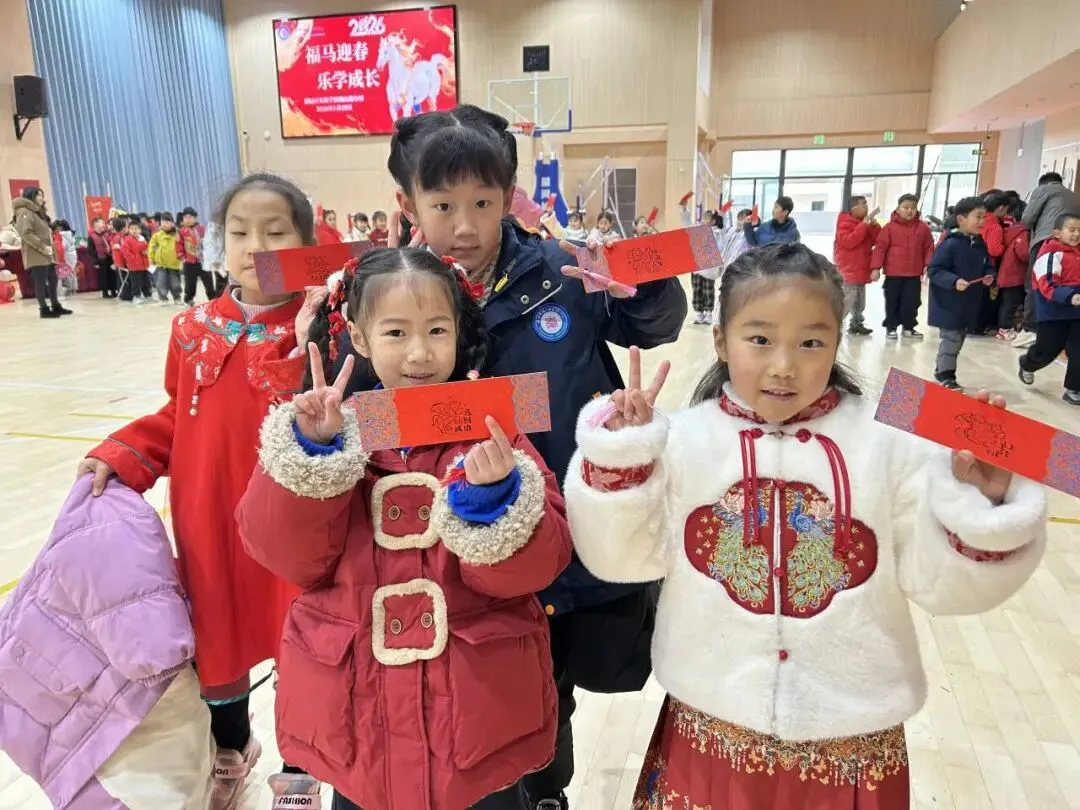 本次游园活动精心设置了 “福签祈福泽”“福满闯文关”“福娃数智星”“福气英语行”“福跃运动营”“福韵节奏秀”“福马拓新章” 七大特色关卡,涵盖语文、数学、英语、体育、音乐等多个学科,既考察了学生的知识掌握情况,又注重综合素养的提升,更融入了浓浓的新春文化气息。