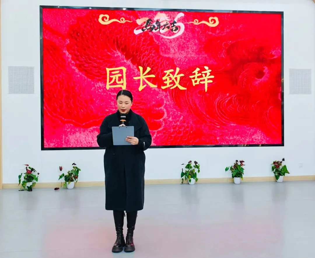 园长郇敏上台致辞,向全体教职员工致以最诚挚的新春祝福,回顾了2025年集团全体教职工在幼教岗位上的耕耘与坚守、成长与收获。她深情表示,幼儿园的每一点进步、每一份成就,都离不开每一位“她”的默默付出与责任担当,既欣喜于老师们的专业成长,更感动于大家对幼教事业的赤诚热爱,同时寄语全体教职工,新的一年不忘初心、笃行致远,以马年的昂扬姿态,共同书写建邺实验幼教集团的崭新篇章。