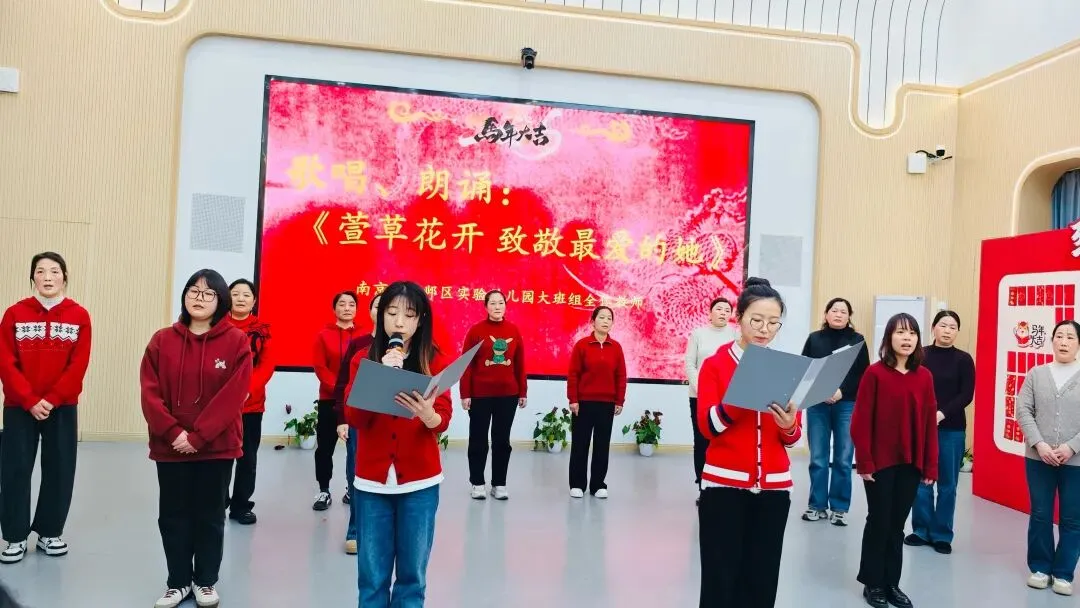 南京市建邺区实验幼儿园大班组全体教师带来歌唱朗诵《萱草花开 致敬最美的她》。萱草花象征着温暖与守护,正如幼教人对孩子的爱,老师们以温柔的歌声、深情的朗诵,致敬每一位在幼教岗位上默默耕耘的“她”,感恩并肩同行的时光,传递着对幼教事业的热爱与坚守。