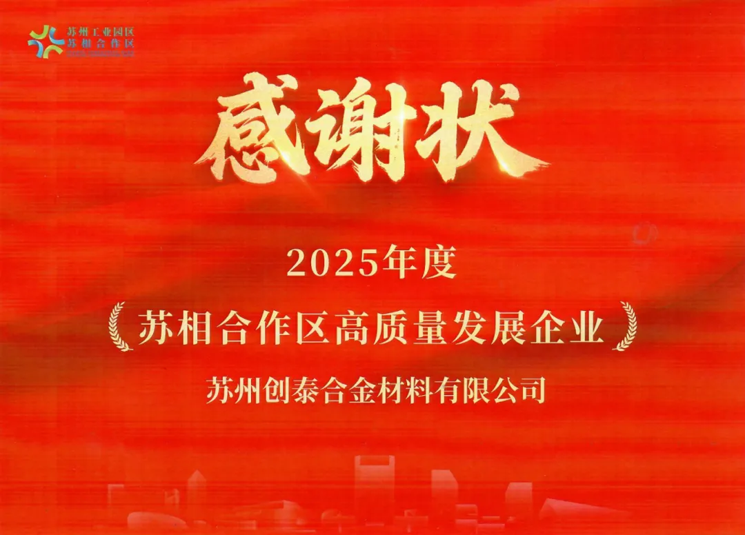 1月27日“凝心聚力启新程·智企同行开新篇”漕湖商会全体会员大会暨2026迎新年会在苏相合作区启航时代大厦召开。会上,苏州创泰合金材料有限公司凭借在科技创新、绿色发展与产业赋能上的亮眼表现,获评“2025年苏相合作区高质量发展企业”,这份荣誉是对企业深耕实业的高度认可,更是对其助力区域制造升级的充分肯定。