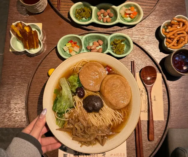 午饭可以去狮子桥,点一份鸭血粉丝汤。不是惊艳,但稳。鸭肝、鸭肠、豆腐泡,层次分明,粉丝滑得像没骨头。别去找那些改了装修的“古早味”,本地人更爱转进小巷的一家简陋小店。