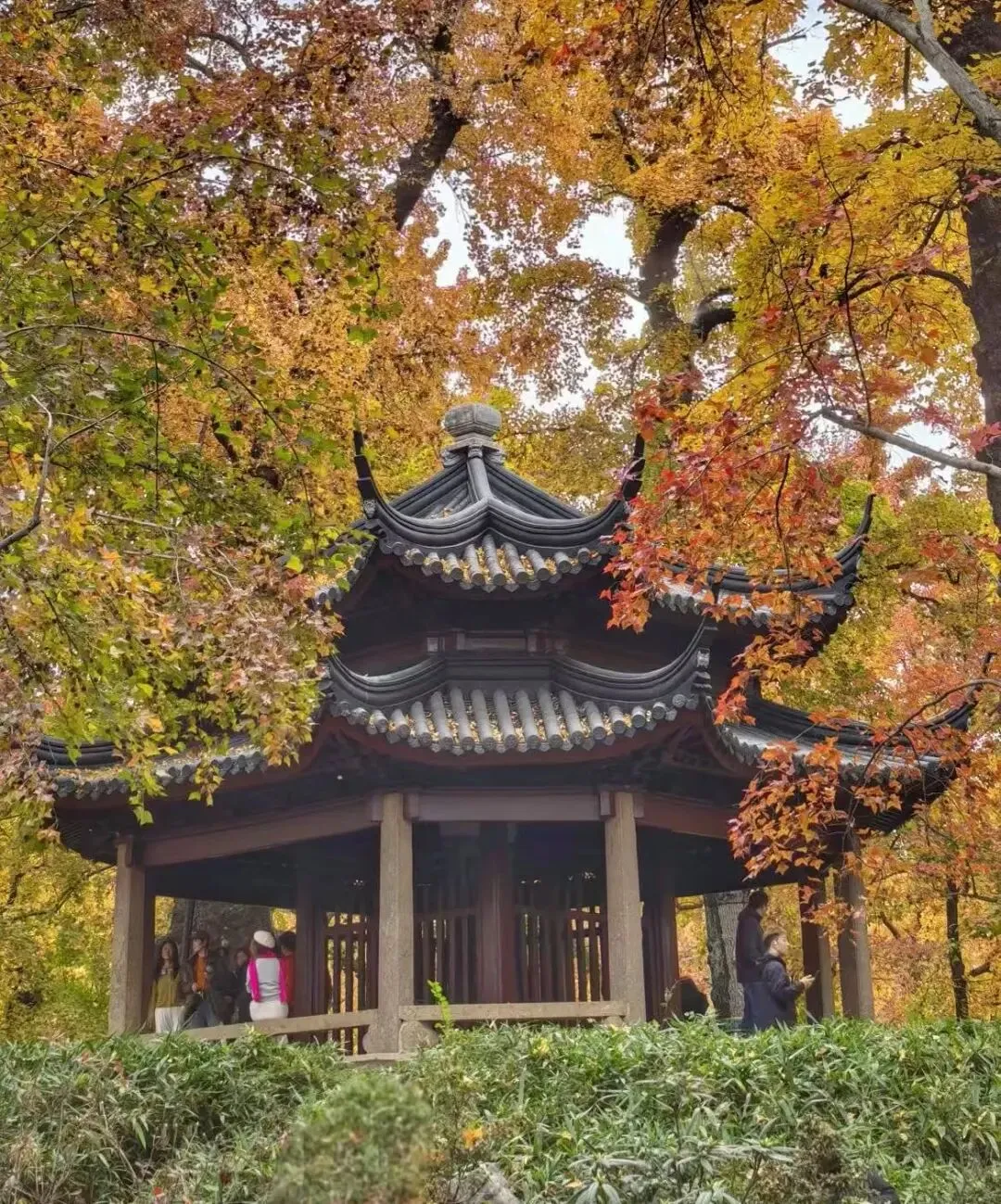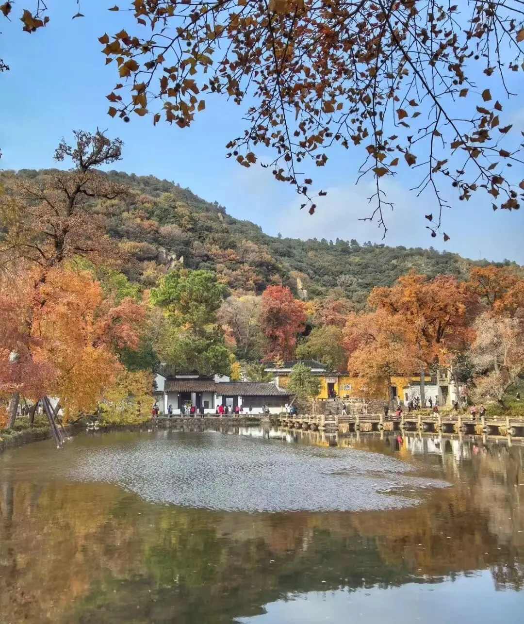 喜欢安静,选晚秋工作日,叶色偏深,游客少,山里只剩脚步声和水声。