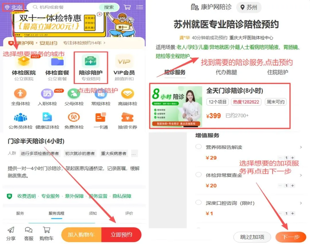 ③按需选择【具体的陪诊服务】进行预约,并填写信息及陪诊时间