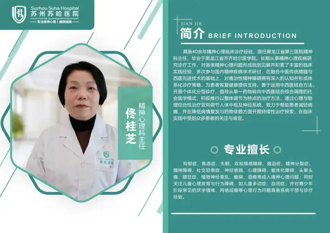 当孩子出现厌学叛逆、情绪反复,或成人被失眠焦虑、精神内耗纠缠时,你是否在寻找一种 “标本兼治” 的诊疗方案?在苏州苏哈青少年儿童健康中心,发育行为科主任佟桂芝医生,凭借 40 余年临床积淀,以 “中西医结合” 为核心特色,为无数家庭破解了精神心理问题的困局。