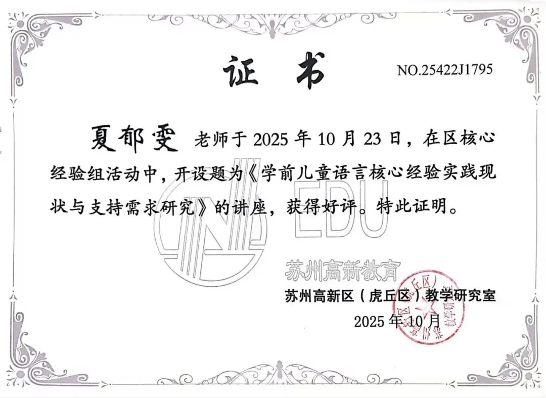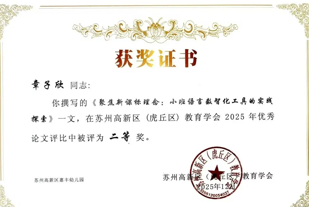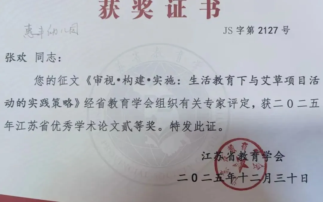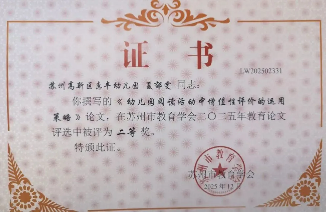 教师们将教育实践中的思考与探索沉淀为理论成果,本年度共有22篇论文参与省、市、区级论文评审,并分获一、二、三等奖;4篇论文在省级以上刊物发表。这些成果不仅是教师专业能力的集中体现,更凝聚着他们对教育事业的热爱与钻研,为幼儿园的教育品牌建设增添了厚重底色。