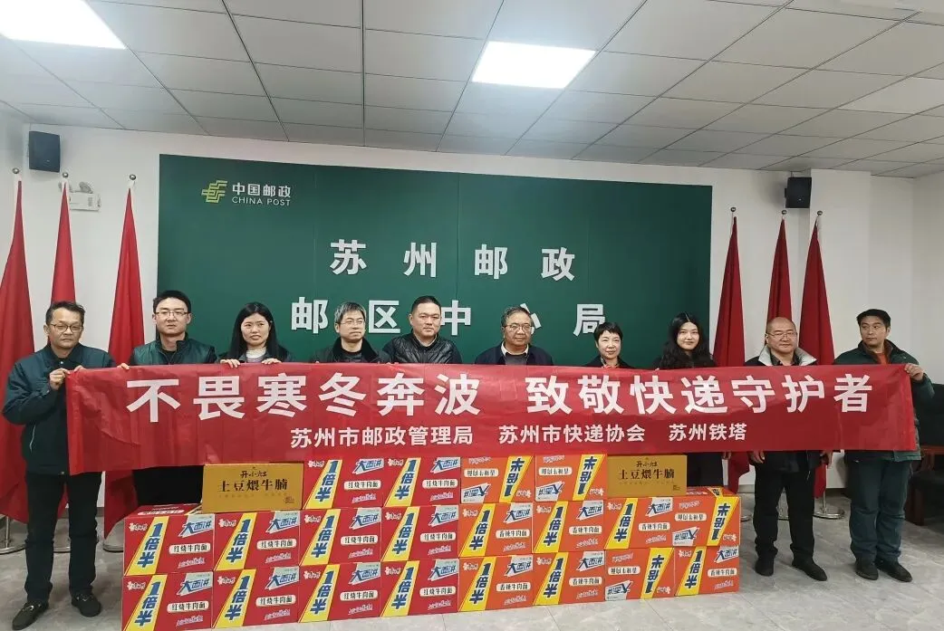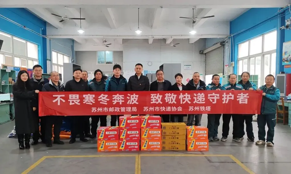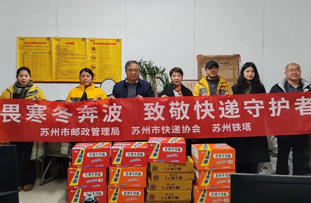 新春佳节将至,快递行业迎来业务高峰,广大快递小哥坚守岗位,为保障民生物资流通、满足群众节日需求默默奉献。为切实传递对一线快递从业人员的关心关爱,营造尊重、关爱快递小哥的良好社会氛围,2月5日下午,苏州市快递协会联合市邮政管理局、中国铁塔股份有限公司苏州市分公司组织开展新春慰问活动,为快递小哥送上冬日的温暖与新春的祝福。