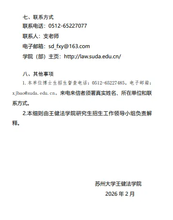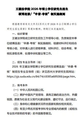 >苏州大学王健法学院2026年博士学位研究生招生实施细则
