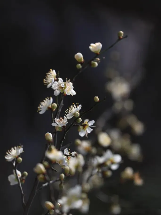 白梅如残雪缀满枝头