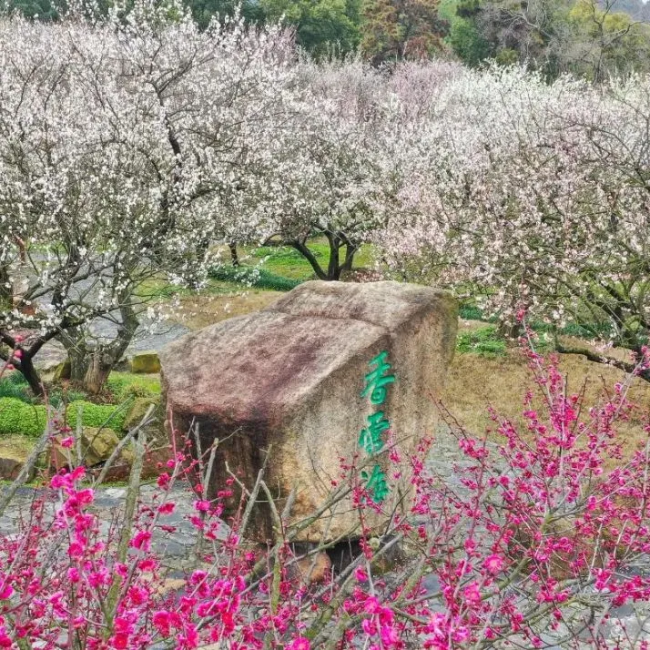 两千多年来,这里的梅花愈发繁盛,至清代已形成“漫山遍野,一望如雪”的奇观。康熙三十五年,江苏巡抚宋荦至此,见漫山梅花如云似雪,暗香浮动,雅兴勃发,在山崖上题下“香雪海”三个大字,铁画银钩,自此这一名称便名扬海内,成为江南赏梅的代名词。