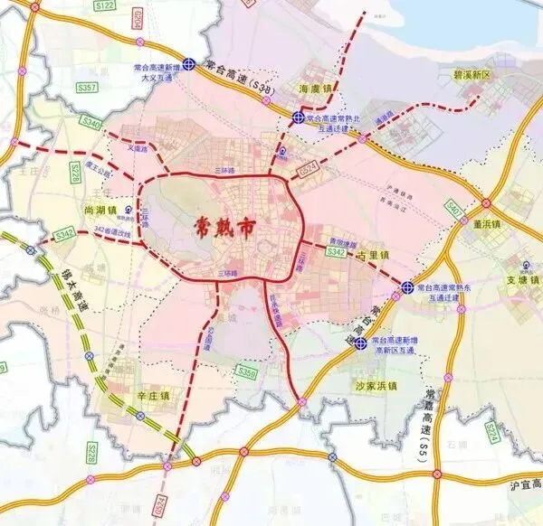 苏常快速路(524国道快速化改造):起自莫城,接524国道安定互通,与锡太公路、申张线航道等交叉,止于常熟与相城区交界处,接524国道相城段,全长约14公里,采用“主线高架+地面辅道”模式,设计速度80公里/小时,是常熟通往苏州主城区的核心通道。