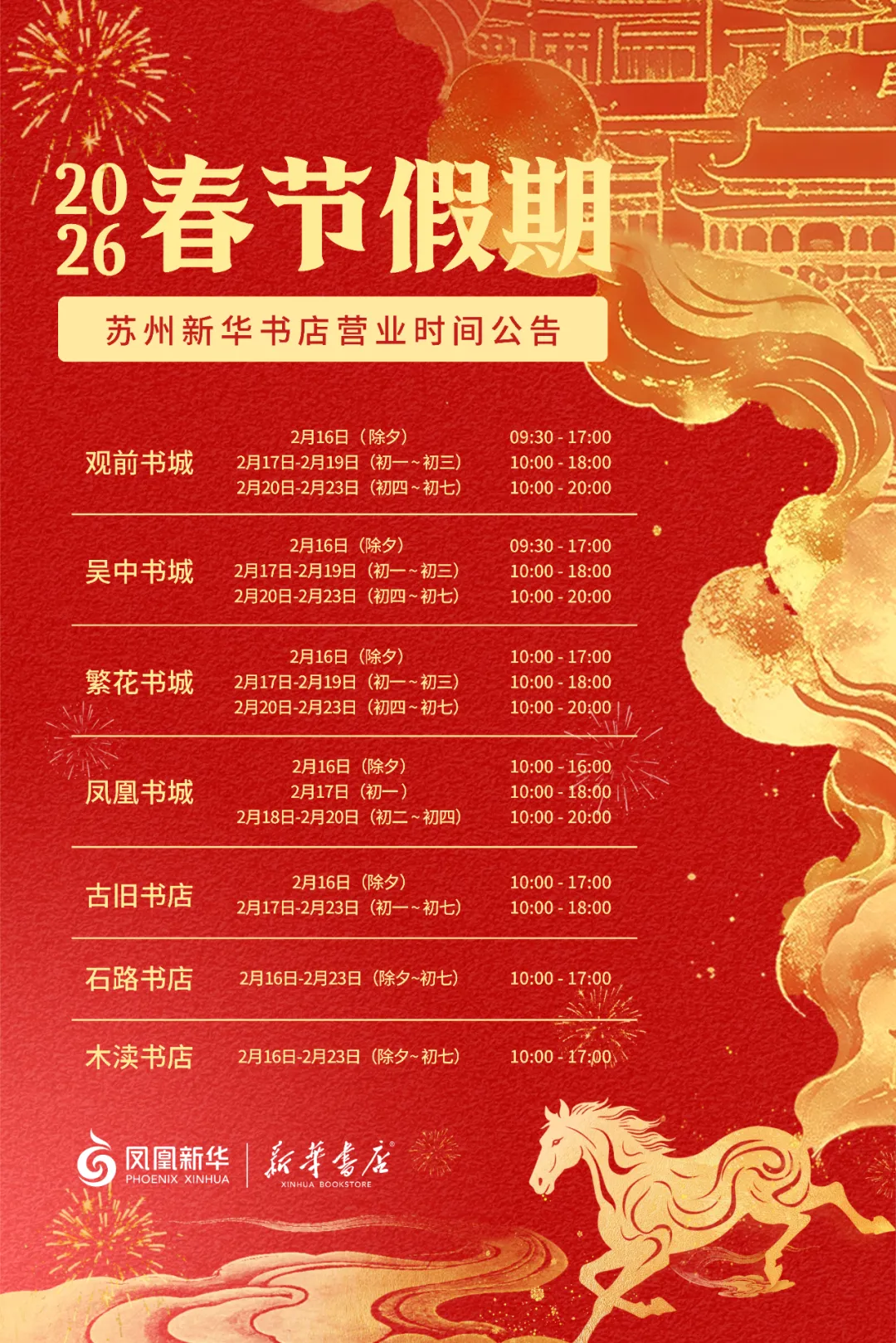 >苏州新华书店春节假期营业时间公告