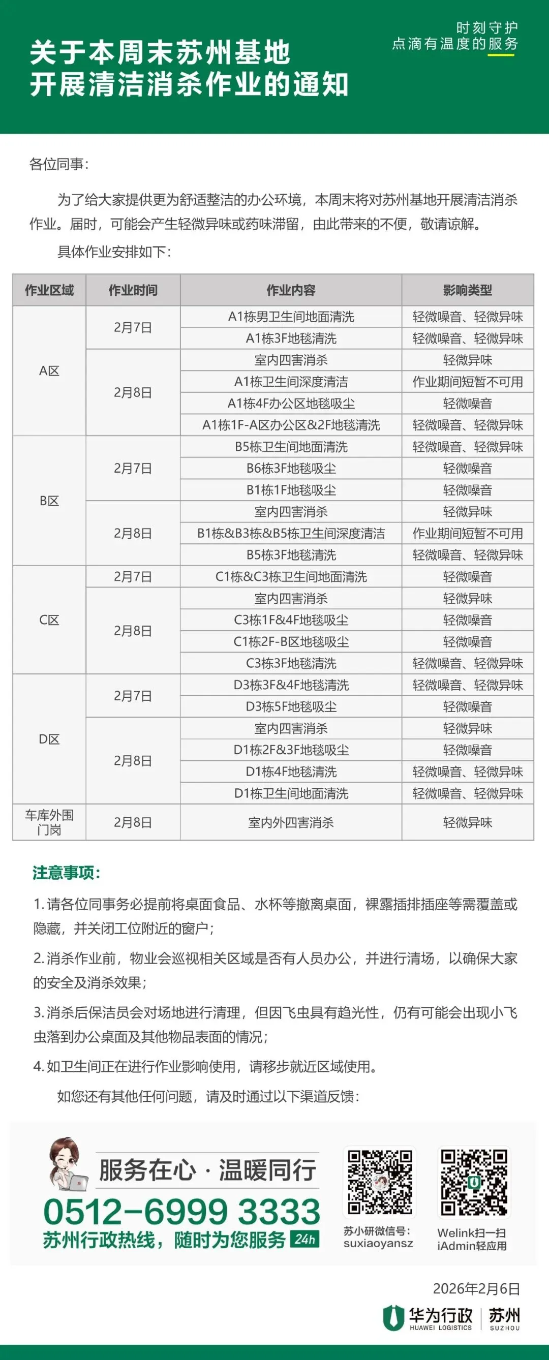 关于本周末苏州基地开展清洁消杀作业的通知