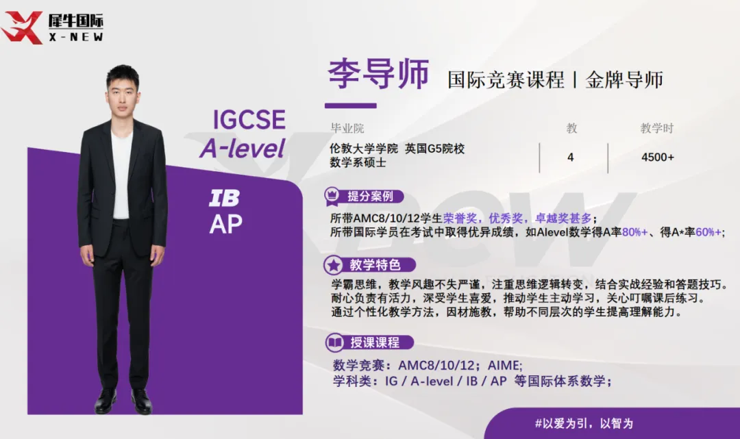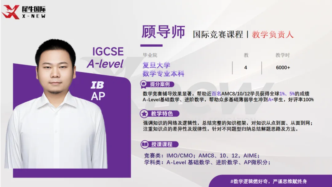 南京犀牛AMC竞赛教师团队,包括英国G5伦敦大学硕士导师,以及国内复旦大学、南开大学、南航等双一流院校的硕士导师。