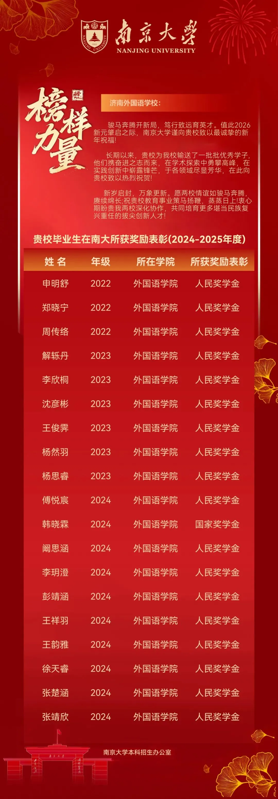 >南京大学发来喜报!19名济外学子荣获奖学金!