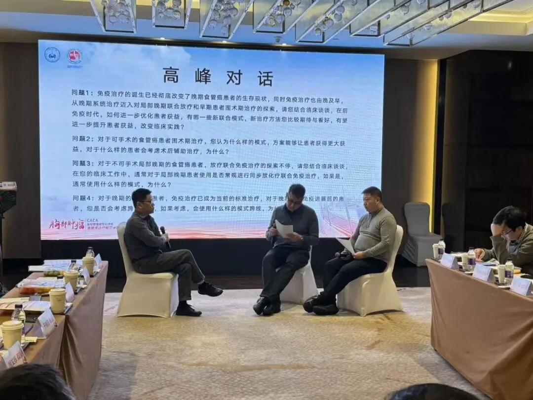 讨论阶段,南通市肿瘤医院樊怿辉教授、泰州市人民医院郭卿教授、泰兴市人民医院奚小祥教授针对食管癌围手术期的治疗展开对话。专家们均表示应通过多学科诊疗(MDT)进行个体化决策,慎重评估手术时机。同时强调,目前食管癌治疗仍是以手术为主的综合治疗,在追求器官保留的同时,不应过早淡化手术的价值,外科技术本身(如吻合技术改良)也在不断进步以改善患者生活质量。